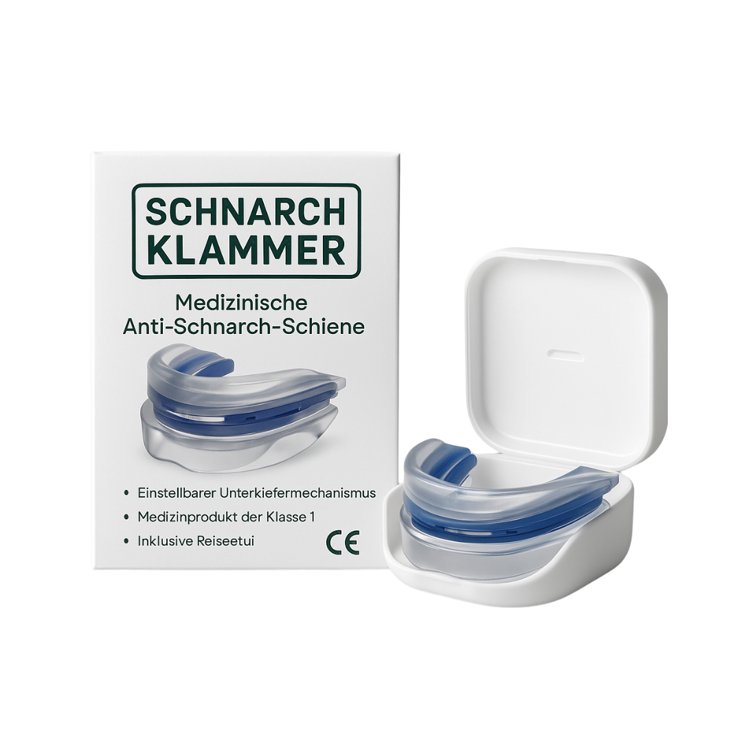 Im Schlaf entspannt sich die Muskulatur des Rachens, wodurch der Unterkiefer zurückfällt und die Atemwege verengt werden. Dies führt zu Vibrationen des Weichgewebes – dem typischen Schnarchgeräusch. Die SchnarchKlammer wirkt dem gezielt entgegen, indem sie den Unterkiefer leicht nach vorne positioniert und so die Atemwege offen hält.